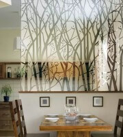 Eine dekorative Fensterfolie mit Baum-Ornamenten eignet sich zum Beispiel für Arbeits- und Besprechungsbereiche oder